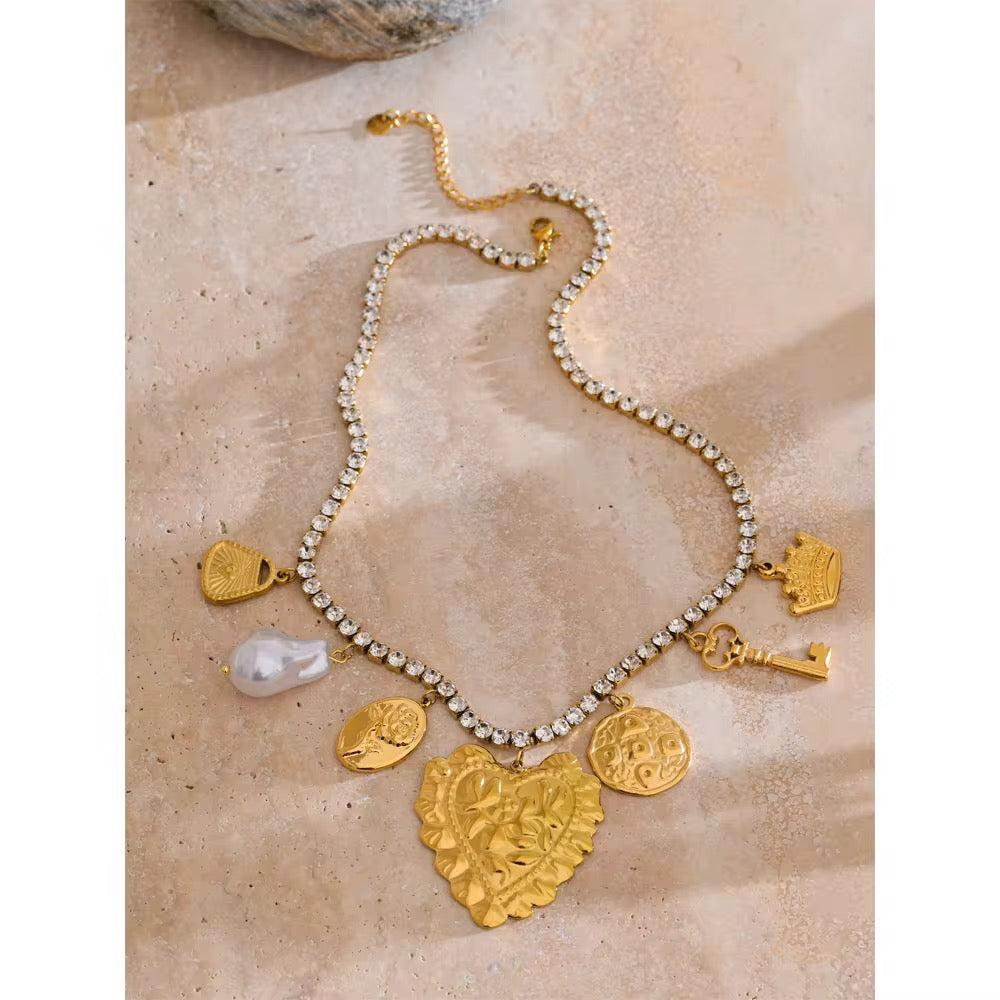 COLLANA FILO STRASS CON CUORI