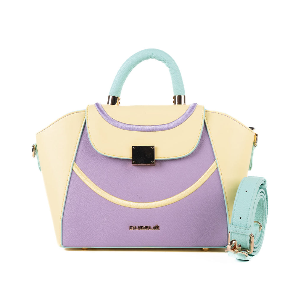 La borsa Ginevra Lilla Dubelie è un accessorio dallo stile fresco e vivace, perfetto per chi ama distinguersi con eleganza.