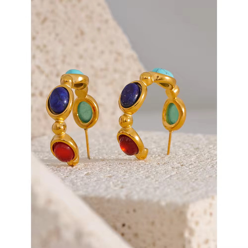 ORECCHINI A CERCHIO CON PIETRE OVALI