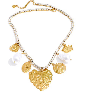 COLLANA FILO STRASS CON CUORI