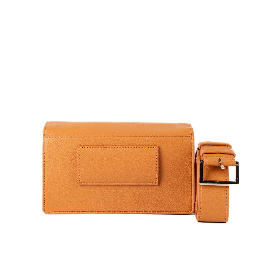 ADJUSTABLE FAUX LEATHER BELT BAG, FEATURING A REMOVABLE POUCH WITH FLAP AND MONOGRAM.