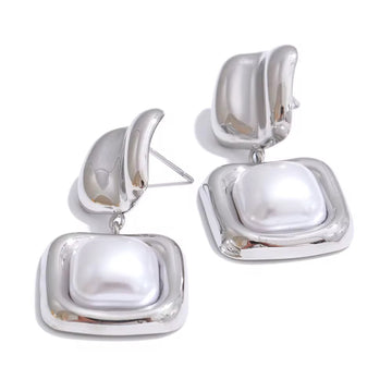 ORECCHINI PENDENTI CON PERLE QUADRATE ARGENTO